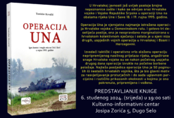 Pozivamo vas na predstavljanje knjige Operacija Una: Igra karata i magla rata na Uni i Savi u rujnu 1995. godine autora Tomislava Kovačića iz Dugog Sela, brigadira Hrvatske vojske.